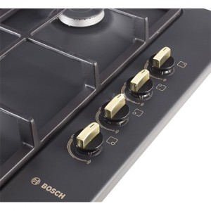 Такая панель оборудована четырьмя газовыми конфорками, одна из которых идёт как экспресс – конфорка. Так же на данной панели рядом с переключателями размещен и автоматический электро — поджигатель. С его помощью зажигать такую варочную панель становится ещё комфортней. Варочная панель Bosch PBP 613B0E обладает термоэлектрической защитой от утечки газа, что так же играет большую и важную роль.