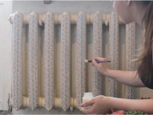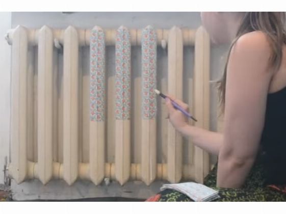 Аналогично оклеиваем салфетками оставшиеся секции батареи