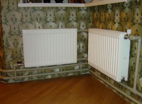 - Устанавливаются радиаторы (всегда под окнами!) на кронштейнах. Над полом они должны расположиться на 10 – 12 см и от стен на 2 – 5 см.