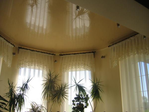 Осуществив глянцевый вариант натяжного потолка, вы немного проиграете, так как он не будет гармонировать с металлопластиковыми окнами.