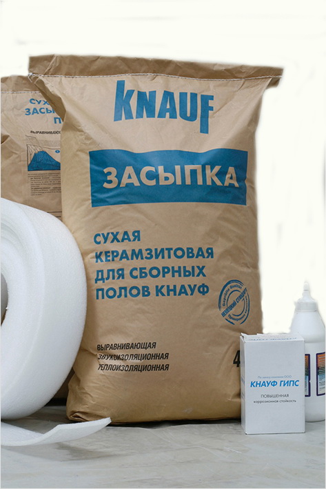 Если вы хотите создать в любом помещении ровный сборный пол, то вам стоит купить сухую засыпку Кнауф. Основой материала является керамзитовый песок, благодаря которому поверхность получается идеальной, при этом она помогает создать звуко- и теплоизоляцию.