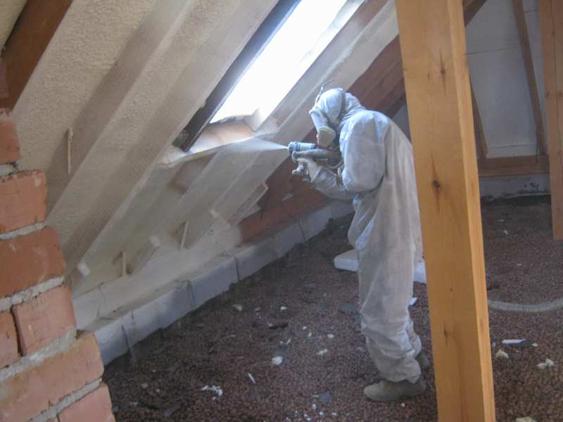Напыление пенополиуретаном   особенностиУтепление домов актуально для всех, вне зависимости от региона. Напыление пенополиуретаном представляет собой эффективное решение проблемы. Данный утеплитель имеет двухкомпонентный состав. Теплопроводность этого материала низкая. Этот показатель составляет в данном случае 0,021 Вт/м 2К. Вспенённый пенополиуретан, имеющий толщину 0,05 м соответствует по своей теплопроводности кладке кирпича в 1,6 м. Также следует отметить, что это — лёгкий материал. Так что он очень популярен у строителей любого профиля, как и популярны каминные топки российского производства (смотреть) .