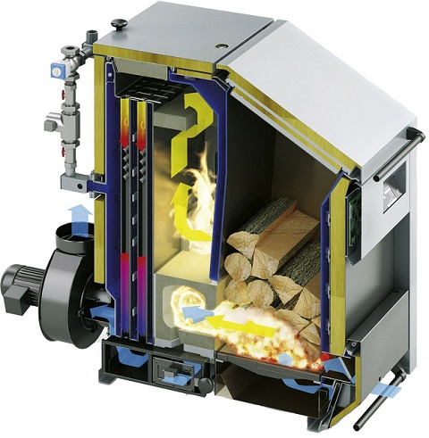Твердотопливные отопительные котлы могут оснащаться колосником, разделяющим две камеры для топки, и который правильно размещает дрова, уголь, пеллеты или другое топливо. Благодаря тому, что дымосос создает принудительную тягу, и происходит обогрев помещения.