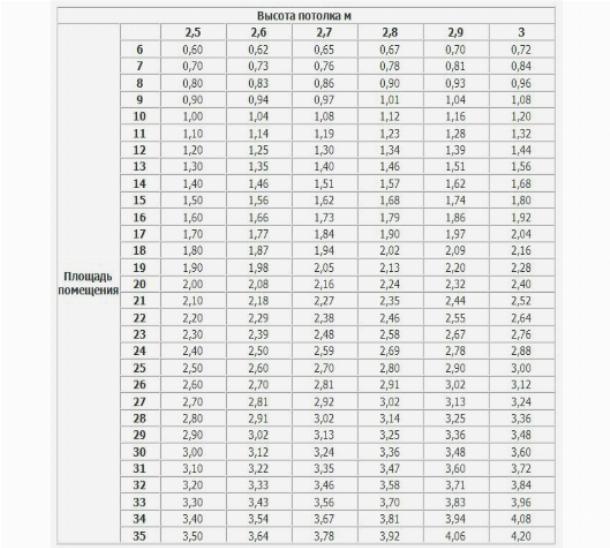 Считаем площадь нашего помещения, перемножая его длину и ширину. После этого умножаем ее на 100 Вт и делим на теплоотдачу одной секции.