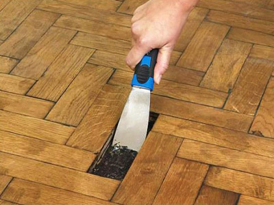 Ремонт паркетного полаПол из паркета со временем изнашивается: появляются царапины, лак вытирается, появляются дефекты. Но не спешите укладывать другой паркет, можно отреставрировать и старый.От царапин легко избавиться с помощью специального воскового карандаша, который нужно подобрать в тон паркету. Воск карандаша нагревают до размягчения и затирают царапины. Чтоб поверхность была идеально ровной, то можно использовать гибкий шпатель из резины.