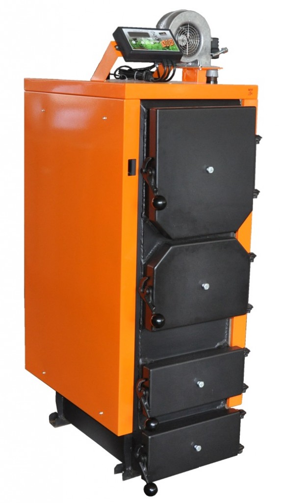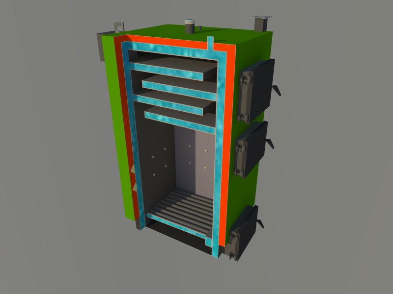 2. Твердотопливный угольный котел оснащается герметично закрывающейся дверкой топки. Для регулирования температуры горения предусмотрена принудительная вентиляция. Такая же система участвует при выводе газа и пара через специальный дымоход.