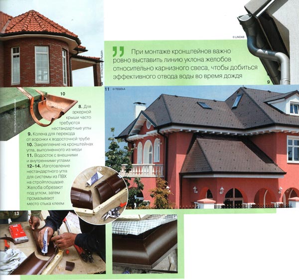 Хотим напомнить, что на сегодняшний день при строительстве коттеджа в большинстве случаев используют водостоки сделанные из оцинкованной стали, а также имеющие полимерные покрытие («АКВАСИСТЕМ» — Россия, LUNDAB — Швеция и RUUKKI — Финляндия), из ПВХ (BRAAS — Германия, GAMRAT,GALECO — Польша, NICOLI — Франция, RUPLAIST — Россия, HUNTER — Великобритания), а также из сплава цинка и титана и из меди(LINDAB — Швеция, BRAAS — Германия). Что самое интересное — это то, что основные принципы системные устройства у всех одинаковые, независимо от материала.