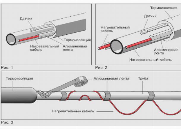 Способы крепления нагревающего кабеля на канализационном трубопроводе