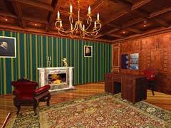 «Они плотно заполняли стены орнаментом, похожим на мишуру и начертаниями, с какими-то непонятными разрастаниями и выпячивающимися складочками занавесов; разнообразными финтифлюшками, которые разве что подходили прислуге, этот непередаваемый комфорт, возможно, доставить значительное удовольствие лишь слепому».