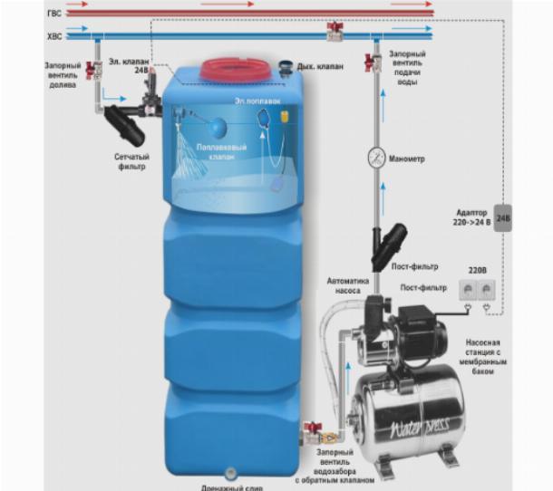 Рассмотрим на примере, как обеспечить водоснабжением дом из прилегающей скважины скважины. В качестве примера выступит загородный дом в 500 кв м.